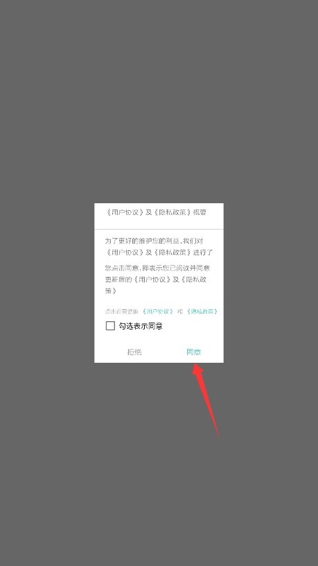 1、初次使用需阅读平台服务条款与隐私政策,确认后点击同意选项进入应用。