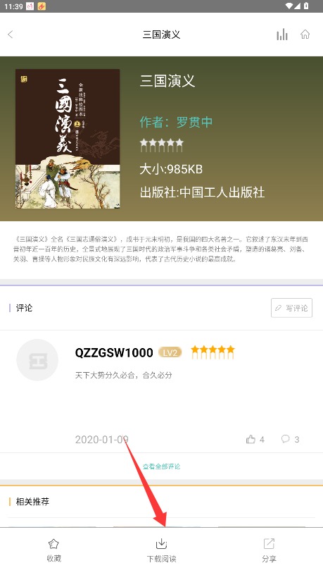 4、选择目标书籍进入详情页,点击下载阅读按钮即可开始浏览小说完整章节内容。