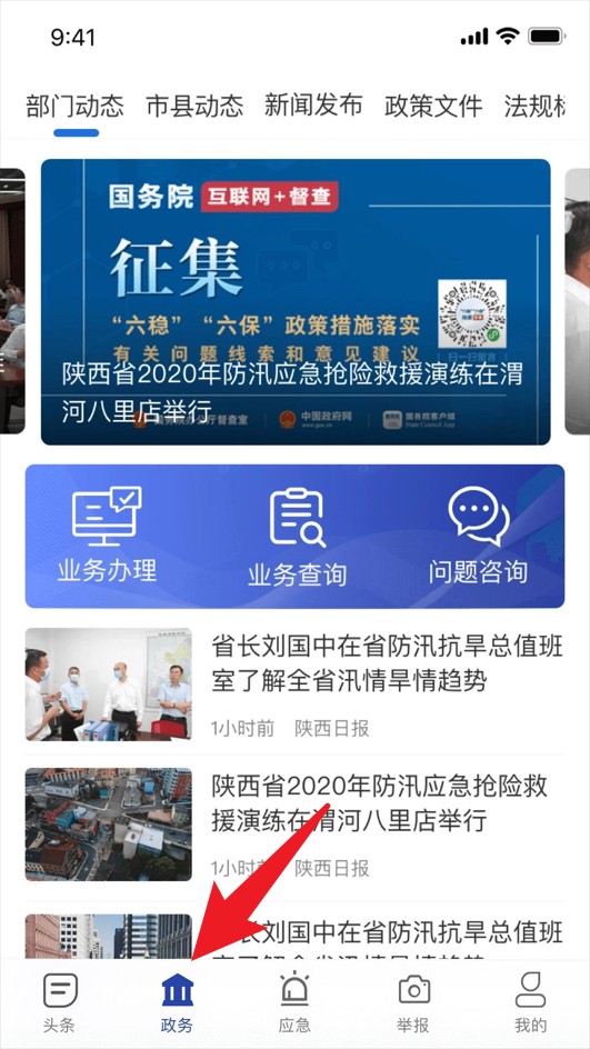 2、点击底部“政务”栏目可存取政策文件、新闻发布与业务查询服务,支援在线查看各类权威訊息。