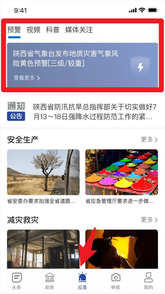 3、在“应急”栏目中可接收实时预警通报、应急救援动态和安全提醒,及时掌握官方重要通知。