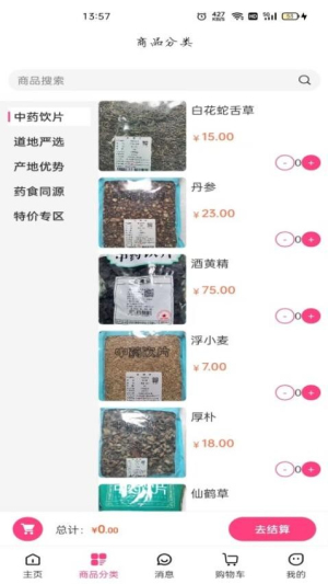 1、下载安装后,注册新账号,登录系统后可浏览各类中药饮片,选择心仪商品进行下单,查找更加便捷。