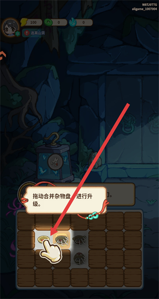 3、进入物品界面,拖动相同的杂物进行合并操作,完成物品升级。