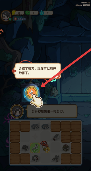 4、点击使用合成后的剪刀,对目标对象进行操作,解救蝴蝶。