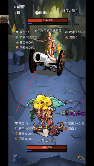 1、查看己方和敌方属性,利用炮塔的攻击优势输出伤害。