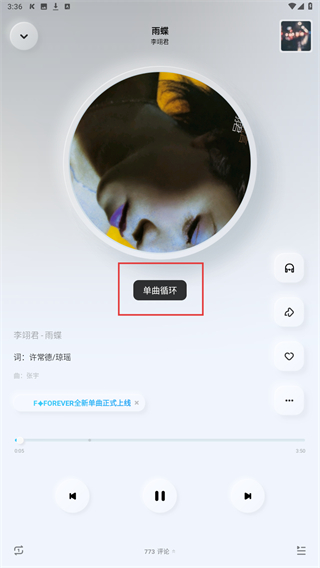 3、点击循环按钮,直至界面显示单曲循环的提示,即可成功。