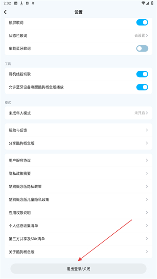 3、进入设置的页面内,向下滑动点击退出登录/关闭的按钮。