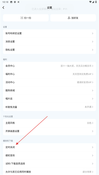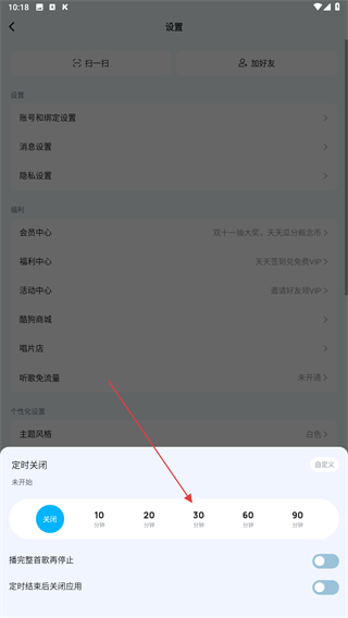 3、进入设置的页面内,点击定时关闭的功能按钮。
