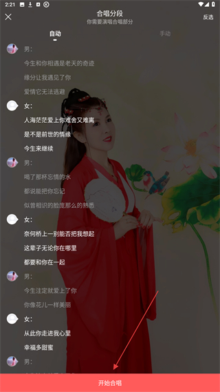3、进入歌曲演唱页后,用户需点击开始演唱。