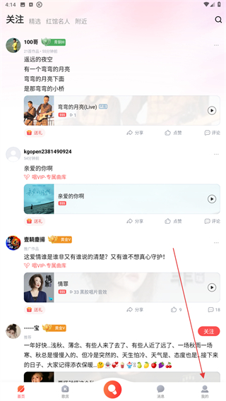 1、打开酷狗唱唱的APP,在首页右下角点击我的图标。