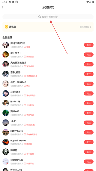 3、进入添加好友的界面内,点击输入框激活输入法。