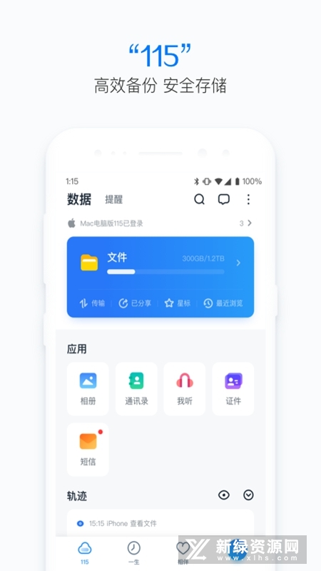 115——提供安全稳定、高效智能的云存储服务,支持相册、通讯录一键备份,海量空间轻松存储一生数据,并可直接在手机端远程管理各终端的设备登录情况,安心又省心