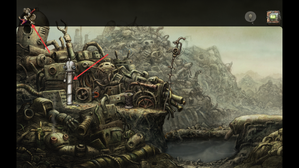 在游戏中会碰到许多不同的难题,玩家必须四处探索并且搜寻各样物品,组合起来或是用来解锁等等,其中还有一些特别的小游戏,游戏中有《太空侵略者》等小游戏。随着游戏的进展,谜题的难度也会逐渐的提升。从初期的只需组合道具破关,到后期复杂的益智难题等等,都能看出Amanita Design的用心。即便玩家真的无法过关,他们还提供了每一个关卡的解答,前提是必须先通过一项小游戏。
