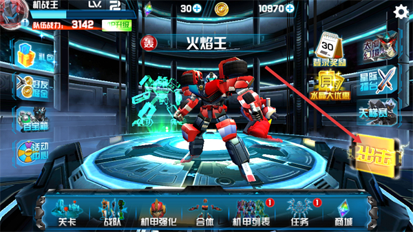 1、在主界面点击右侧“出击”按钮,进入战斗关卡。