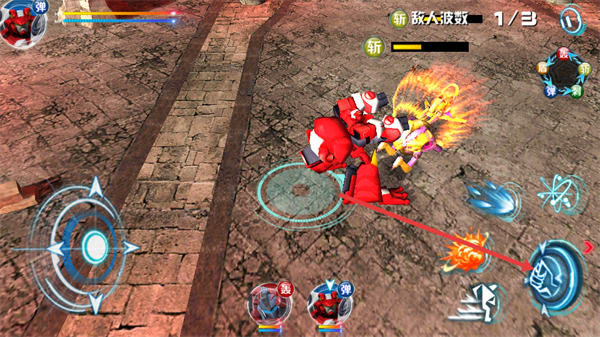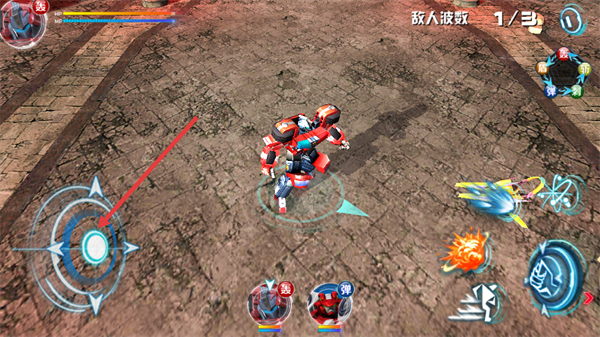 2、通过左侧虚拟摇杆控制机甲移动,调整位置靠近敌人。