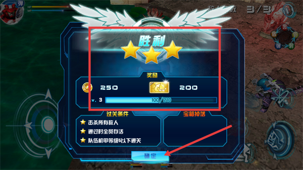 4、通关后会显示胜利界面,点击“确定”领取奖励,完成关卡流程。