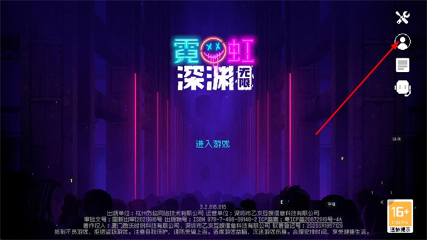 1、在游戏启动界面,点击右上角的用户图标,进入用户中心页面。