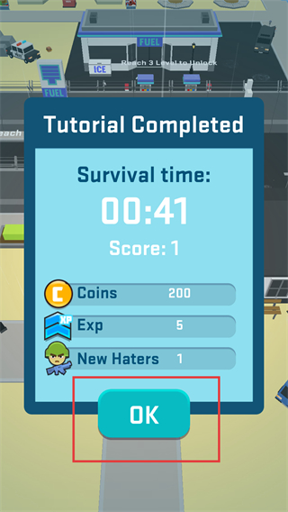 4、教程完成后,查看数据,点击【OK】按钮关闭界面,继续游戏流程。