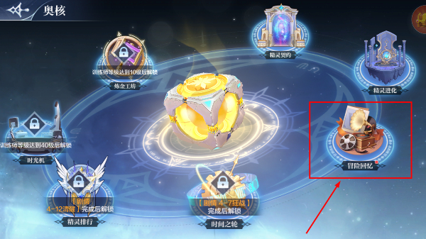 2、进入【奥核】界面后选【冒险回忆】,回顾冒险相关剧情,完成对应任务能获取奥核专属的限定奖励。
