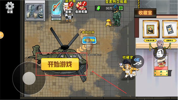 1、进入游戏前可先完成【签到】-【在线奖励】获取资源,再点击【开始游戏】进入战场开启冒险。
