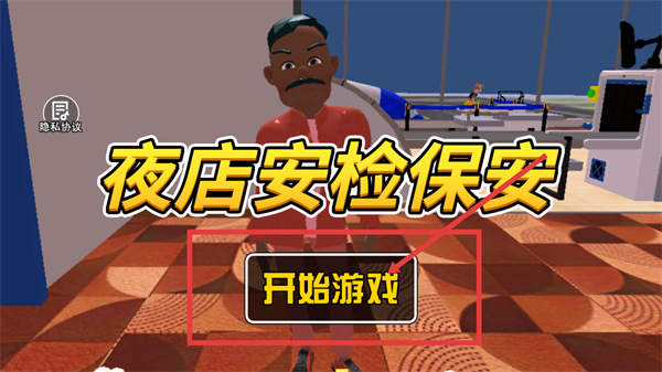 1、在游戏启动页,点击【开始游戏】按钮,进入“夜店安检保安”的游戏场景。