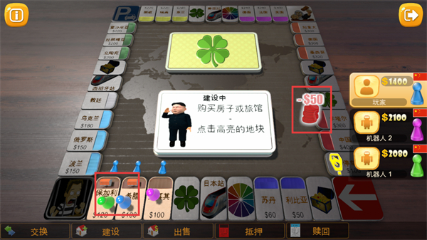 3、建筑升级路径清晰,在集齐同色地块后可以投资建造房屋甚至酒店,大幅提升租金收益以挤压对手生存空间。