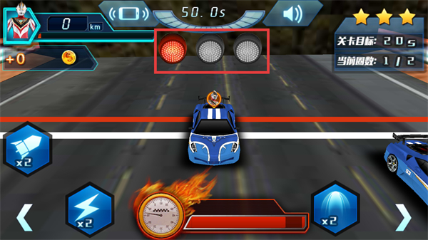 2、关注赛道上方的指示灯状态,按关卡目标推进赛程,同时操控车辆保持行驶节奏。