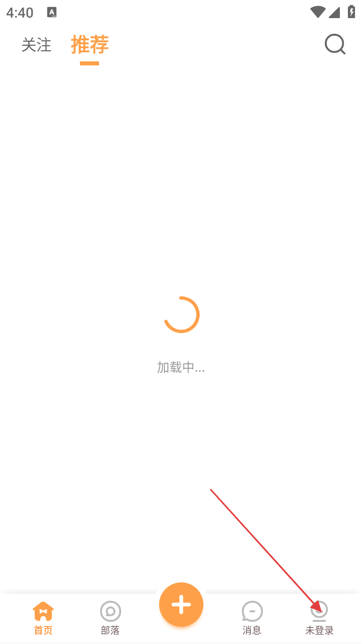1、进入应用后,点击底部【未登录】,进入个人中心准备登录/注册。