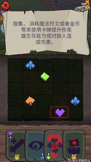 5、游戏隐藏着各类道具与卡牌奖励,通过探索黑砖有机会获得能增强英雄能力或为牌库添加新卡的关键物品,增加探索回报。