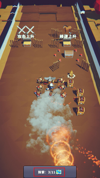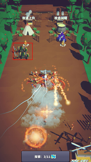1、在探索关卡中,让小队触碰【攻速上升】道具,获取攻速增益,同时击败敌方单位推进进度。