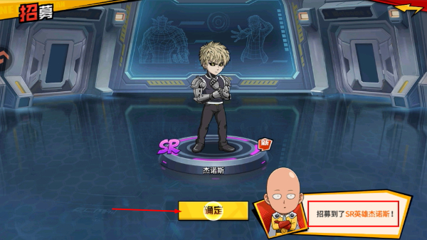 4、招募到【SR】-【杰诺斯】后,点击界面【确定】按钮,完成本次招募流程并继续后续操作。