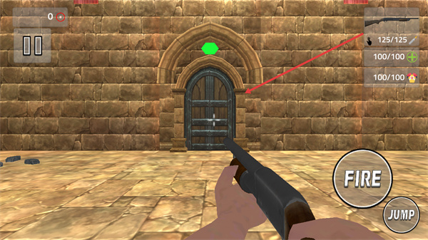1、靠近目标门,门会自动开启;进入后射击指定区域,成功后将出现物资,推进关卡。