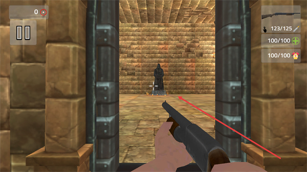2、进入门后区域,瞄准雕像位置射击,触发后续流程,继续推进关卡进度。