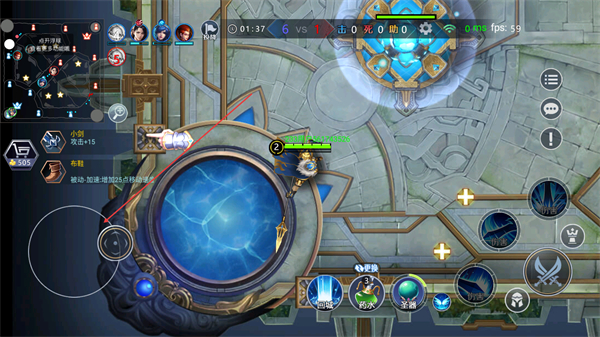 1、操控英雄从泉水出发,向战场区域移动,准备参与团战,推进对局节奏。