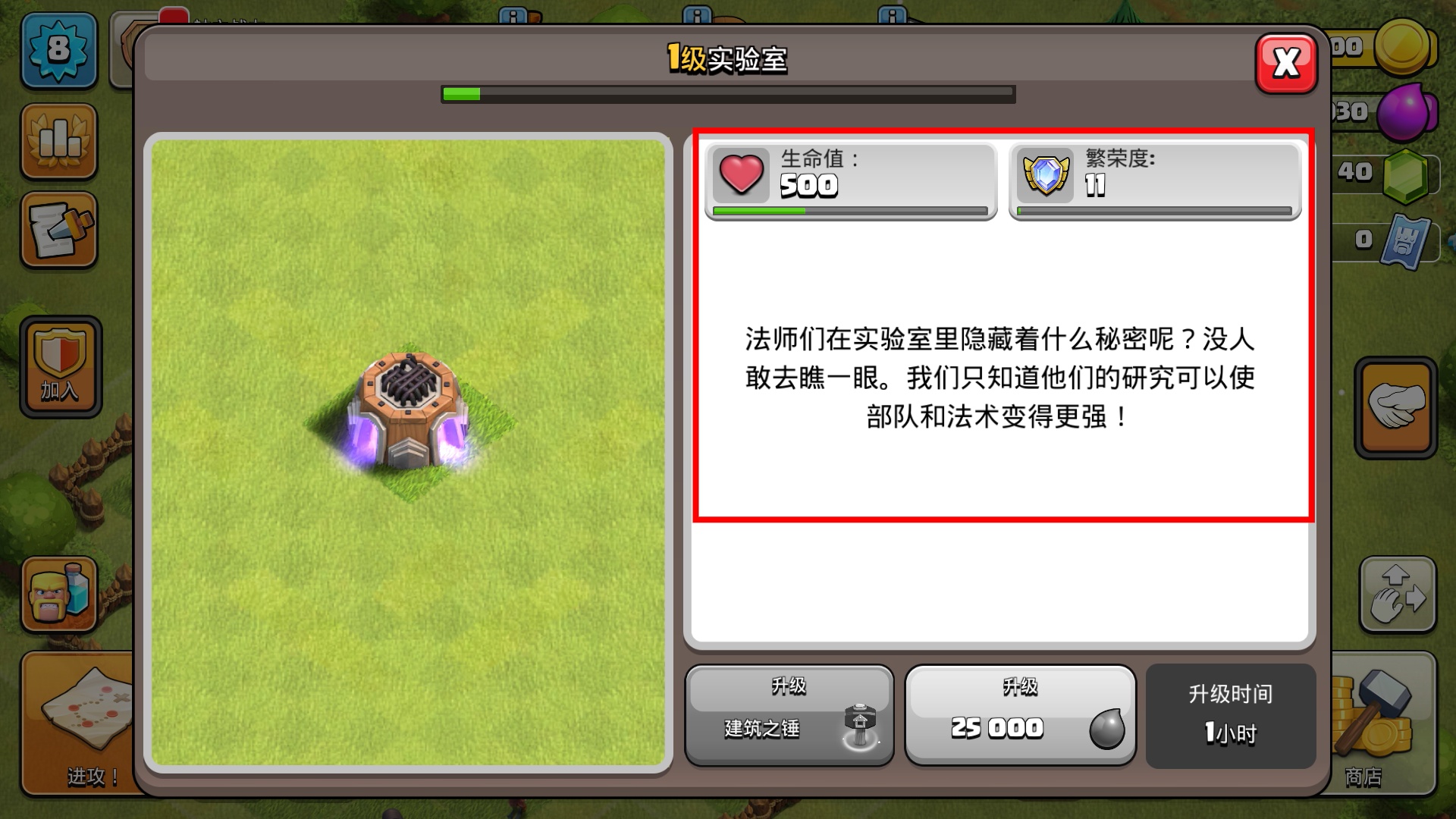2、【实验室】的研究能让部队和法术变强,是增强军队实力的核心建筑,需合理分配资源升级。