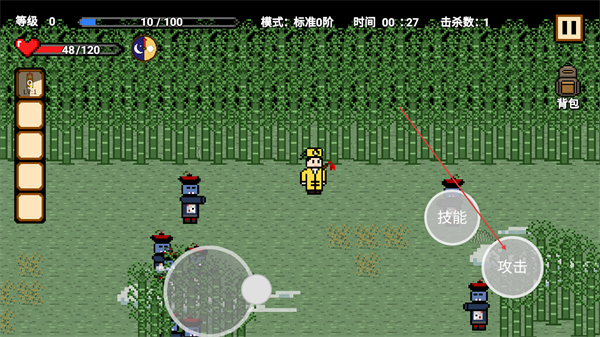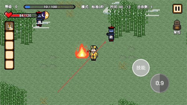 4、敌人增多时,结合技能与攻击,持续击败敌人,积累击杀数,坚持存活。