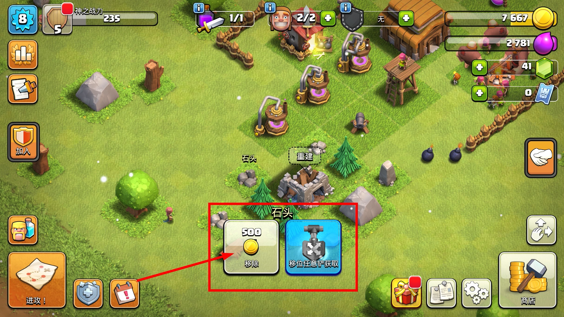 部落冲突怎么移除东西