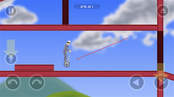 1、操控独轮车角色移动,按箭头提示操作,在钢架上保持平衡,推进关卡。