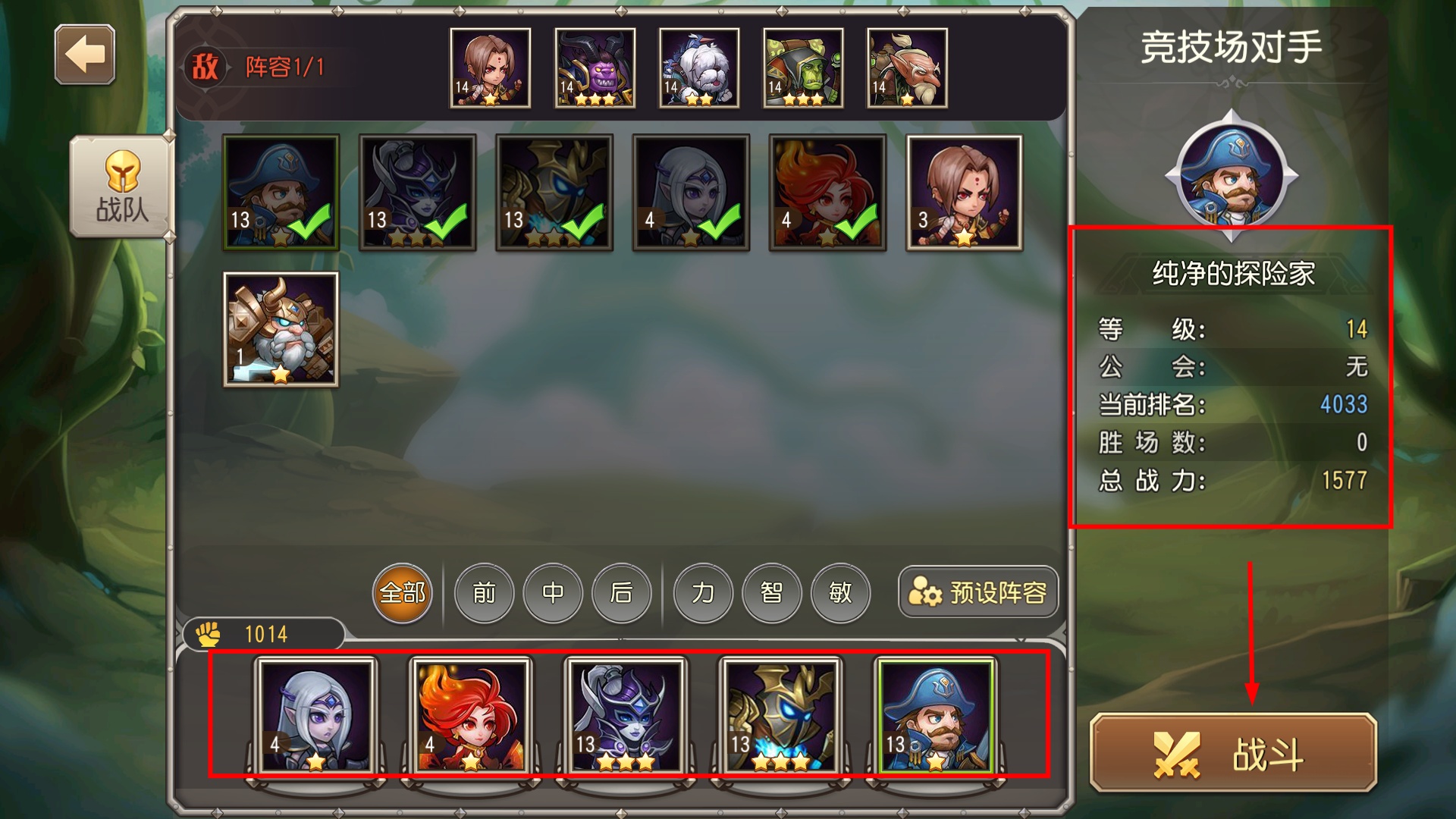 4、挑战前检查阵容战力,确保英雄配置合理,点击战斗按钮发起挑战,争取战胜对手提升排名。