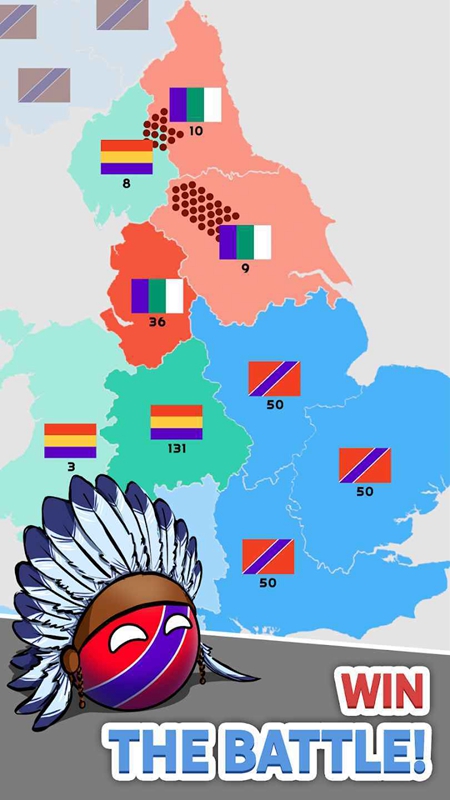 3.极简美术风格:采用低多边形设计,用蓝/红/白三色区分势力范围,战斗特效简洁但反馈直观。