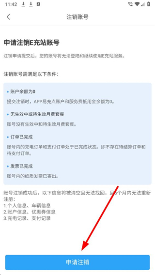 5、确认满足注销条件,点击申请注销即可提交注销请求。