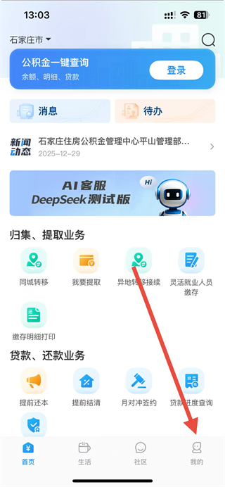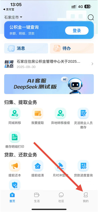 1、在手机公积金app界面,点击底部我的选项,进入我的页面。