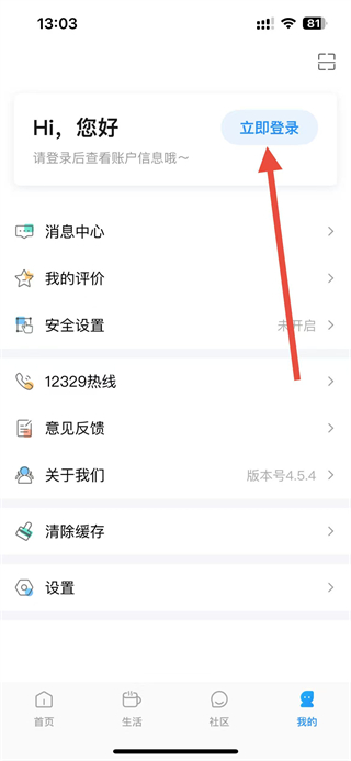 2、进入我的页面后,找到立即登录按钮并点击,进入登录选择界面。