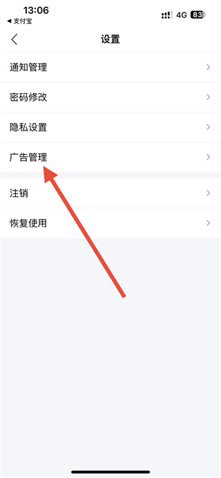 3、在设置页面中,找到广告管理选项并点击,进入广告权限管理界面。
