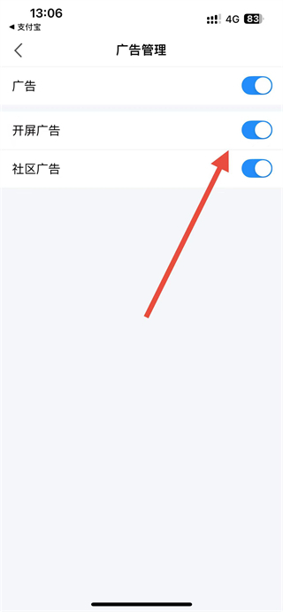 4、在广告管理页面,找到对应的开关,点击开关即可关闭对应的广告展示。