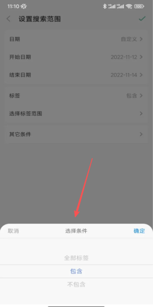 3、进入搜索范围选“自定义日期”,设定起止时间精准筛选某时段memo。