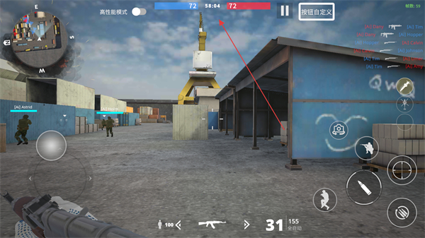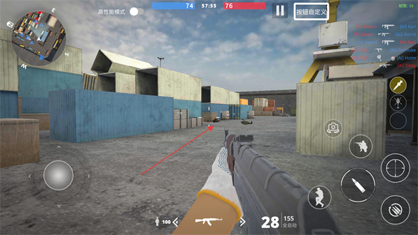 1、利用地形如墙体、集装箱作为掩体,躲避敌方子弹的同时,探头瞄准敌方射击,减少自身掉血风险。