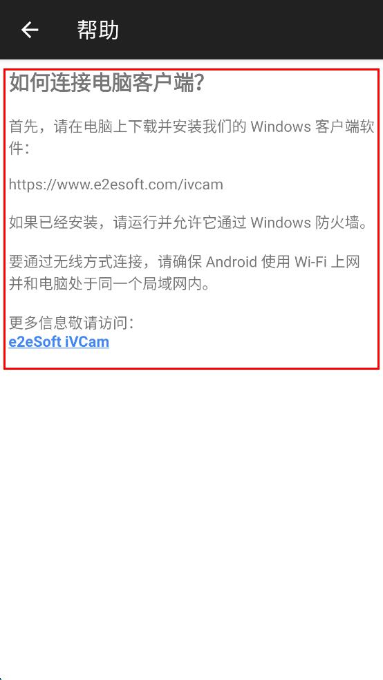 4、在帮助页面,仔细阅读“如何连接电脑客户端?”的内容,按照提示在电脑上下载客户端软件,确保软件通过Windows防火墙,且手机和电脑处于同一局域网内,完成连接准备。