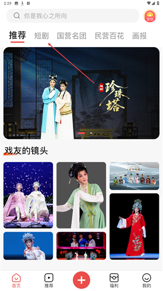1、启动爆米花视频App,进入时点击上方短剧的标签。