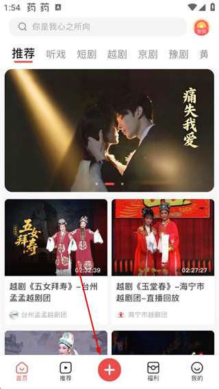 1、打开爆米花视频APP,点击底部的+,进入视频上传或拍摄页面。