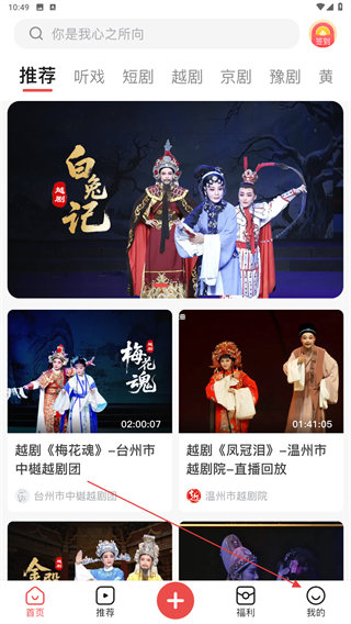 1、打开爆米花视频的APP,进入首页点击我的图标。
